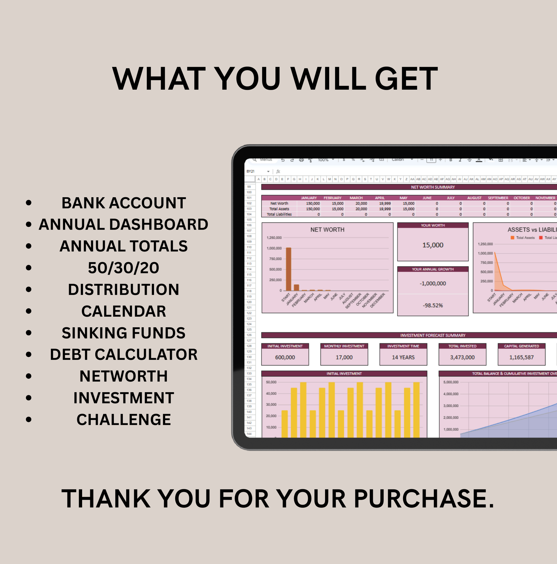 Inside, you'll find customizable templates for monthly budgeting, debt tracking, savings goals, expense logs, and more—all designed to help you reduce financial stress and make smarter money moves.