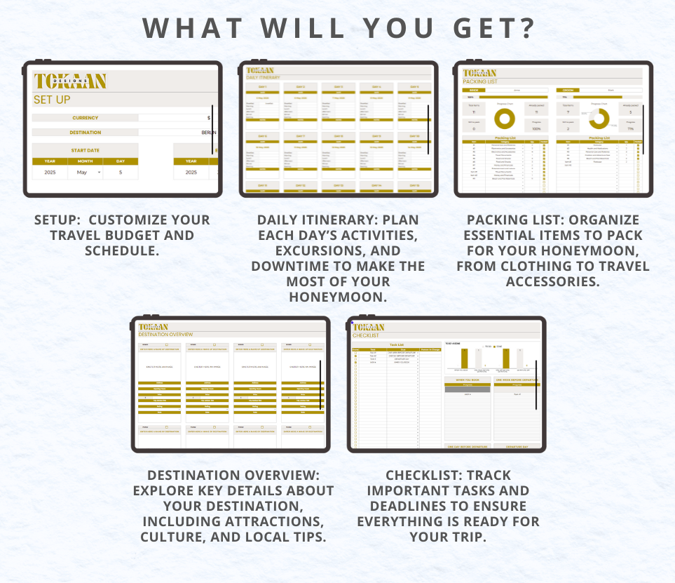 Your honeymoon should be unforgettable—for all the right reasons. Our Honeymoon Travel Planner is a must-have digital tool designed to help couples organize every detail of their post-wedding escape with ease and excitement. From choosing the perfect destination to managing your travel itinerary, this planner takes the stress out of planning and adds more joy to the journey.
