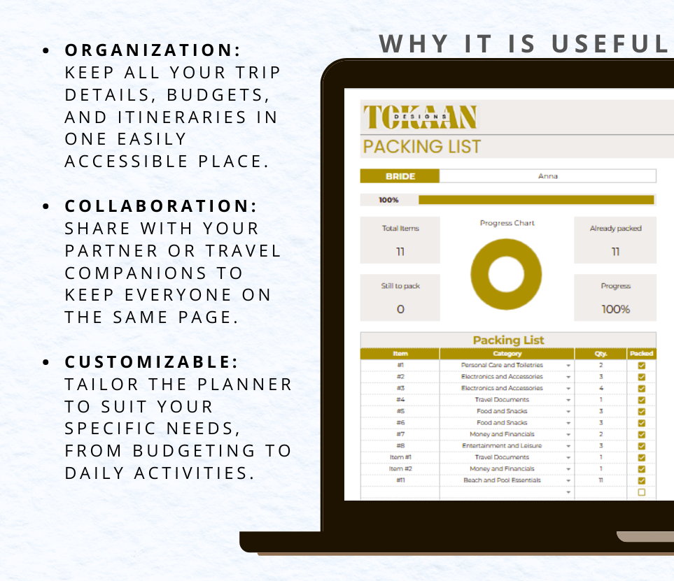 Inside, you’ll find travel checklists, packing guides, budget worksheets, itinerary templates, accommodation trackers, and more—all beautifully organized in a digital format that’s easy to use on any device or print at home.